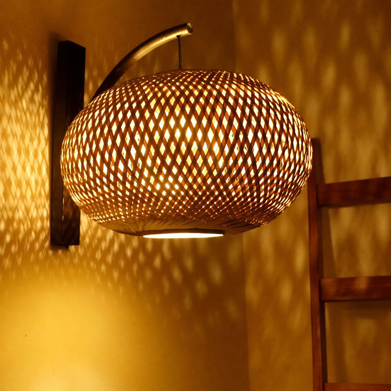 The product is suitable for indoor wall lighting in spaces such as bedrooms, living rooms, hallways, and reading areas. It works by enclosing a standard bulb within the shade and distributing light through its woven structure, producing a consistent and comfortable illumination.
