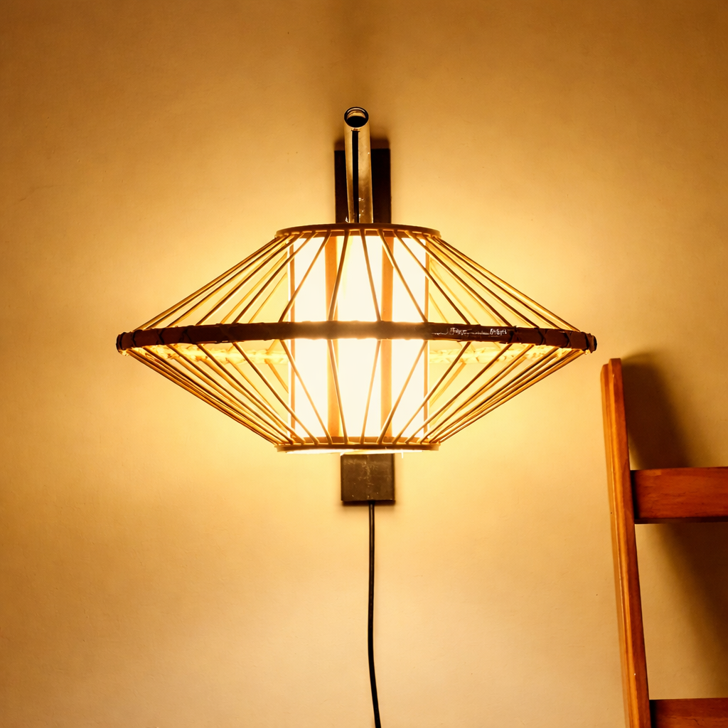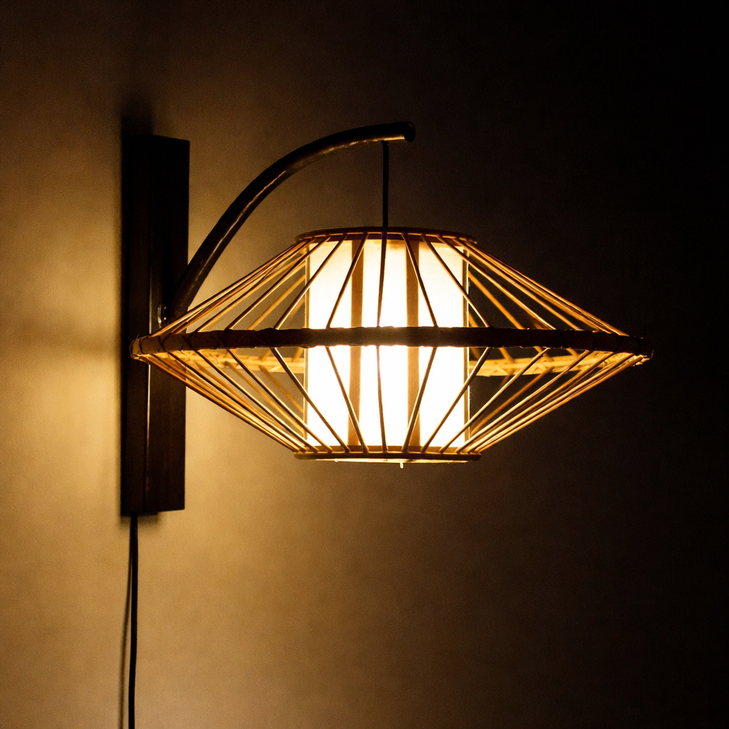 This geometric wall lampshade is designed to provide controlled wall-mounted lighting with a structured and open-frame design. It features a double layer metal construction with a wide angular shape, allowing light to spread evenly while reducing direct glare. The open framework creates a balanced illumination effect while maintaining visibility of the light source. The product is suitable for indoor wall lighting in spaces such as living rooms, bedrooms, hallways, and decorative areas. It works by surrounding a standard bulb with a structured frame, distributing light outward through the open design to create consistent and comfortable brightness.